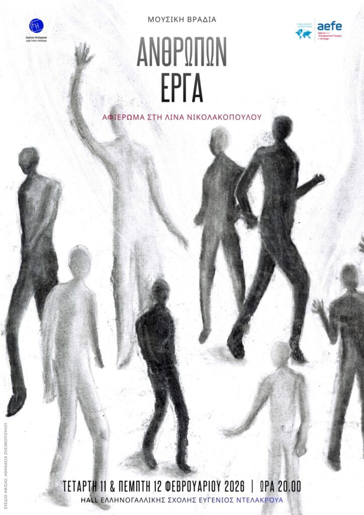 La soirée musicale de cette année est dédiée à Lina Nikolakopoulou, l’une des plus grandes parolières de la chanson grecque contemporaine. Ses chansons, nous les avons tous chantées. Bien souvent, sans même savoir que les paroles étaient les siennes — nous les chantons simplement parce qu’elles nous touchent, nous expriment, nous rappellent des moments romantiques ou, tout simplement, nous apaisent.