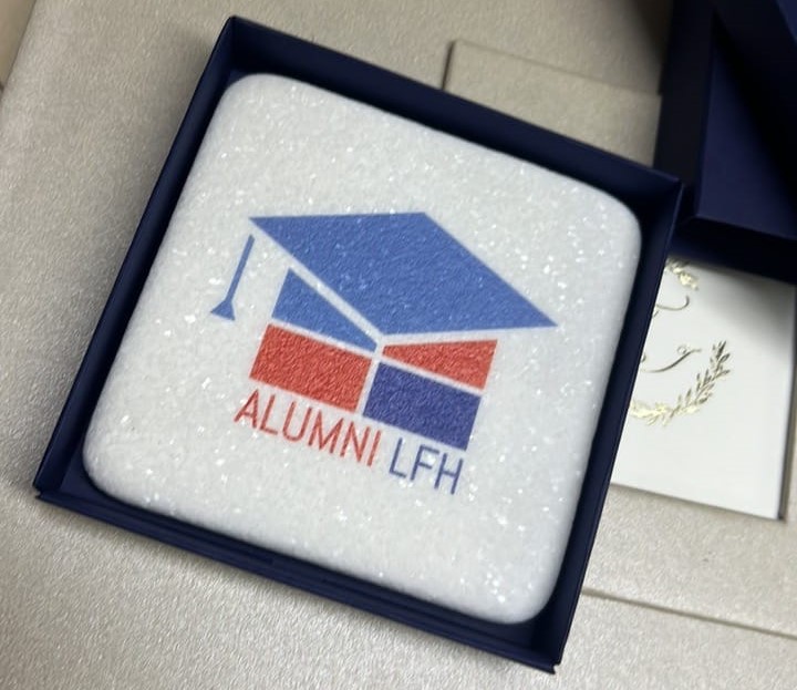 À cette occasion, l'association des anciens élèves a offert à Mme l'ambassadrice un souvenir portant le logo de l'association, créé par notre ancien élève M. Bardizbanian Stefos.